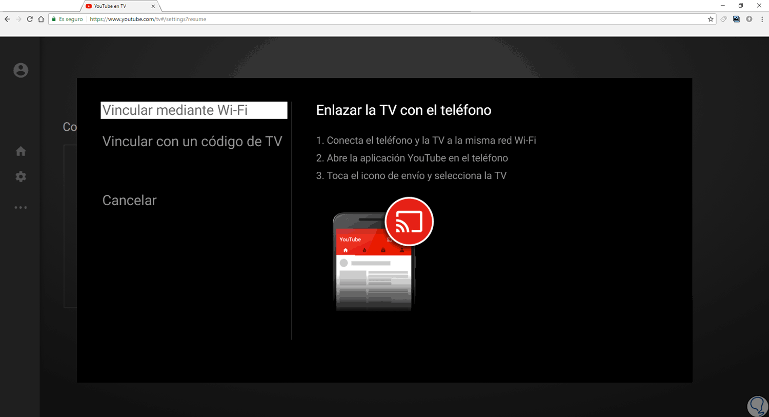 Seleccionamos la opción de “Vincular la TV con el teléfono”.