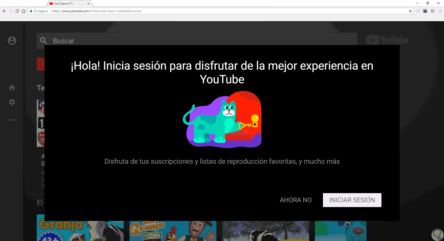 Para acceder a Youtube Leanback sólo tienes que teclear en el navegador del dispositivo en el que deseas visualizar los vídeos la url siguiente. Si tienes una cuenta de Google, puedes iniciar sesión y verás tus listas de reproducción, vídeos subidos, canales a los que estás suscrito, etc.