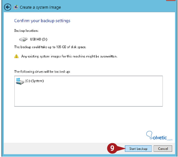 • 9 - Hacemos click en Start Backup. Windows 8 creara la imagen.