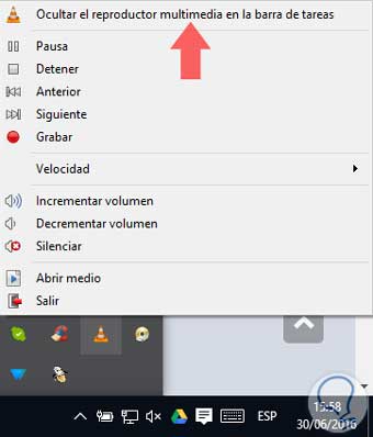 Ten en cuenta, que no podrás cerrar esta ventana mientras desees seguir transmitiendo. No obstante, como no se muestra nada en el reproductor, lo mejor es ocultarlo de la barra de tareas; para ello haz clic con el botón derecho del ratón sobre el icono de VLC del área de notificación y pulsa sobre “Ocultar el reproductor multimedia en la barra de tareas”.