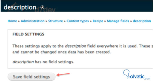 - Hacemos click en el botón de Save field settings en la página de FIELD SETTINGS.