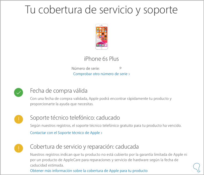 En la nueva pantalla verás si el teléfono se ha comprado de manera correcta y si tiene algún tipo de reporte.