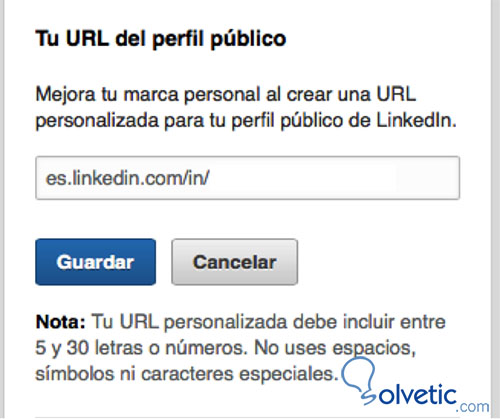 Ahora debemos escribir el nombre que queremos que tengamos nuestra direccion, siempre precedido de : es.linkedin.com/in/