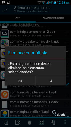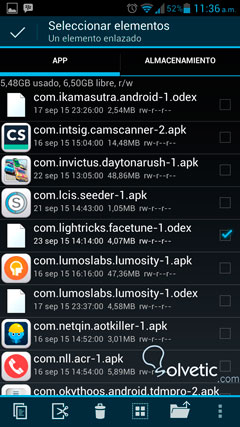 Como pueden vieron anteriormente la aplicación que me dio el problema se llama “facetune.” Sin embargo su paquete lleva el nombre “com.lightricks.facetune-1.odex” este es el que nos interesa borrar, asi que lo lleque,os y luegogo presionamos sobre el icono de la papelera que nos saldrá en la pantalla, nos preguntara si estamos seguros de eliminar el archivo seleccionado, decimos que sí y luego salimos.