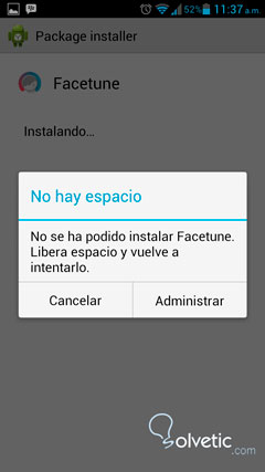 Algo así me sucedió cuando intentaba instalar una App que ya había tenido instalada en mi dispositivo anteriormente y la había desintalado por error, afortunadamente antes había realizado un backup y ya tenía esta aplicación almacenada en la memoria de mi equipo pero cuando intentaba volverla a instalar esta me arrojaba un error de memoria insuficiente, tal como les muestro a continuación…