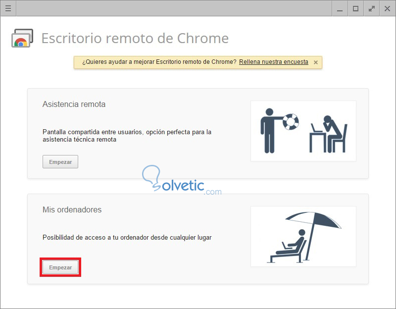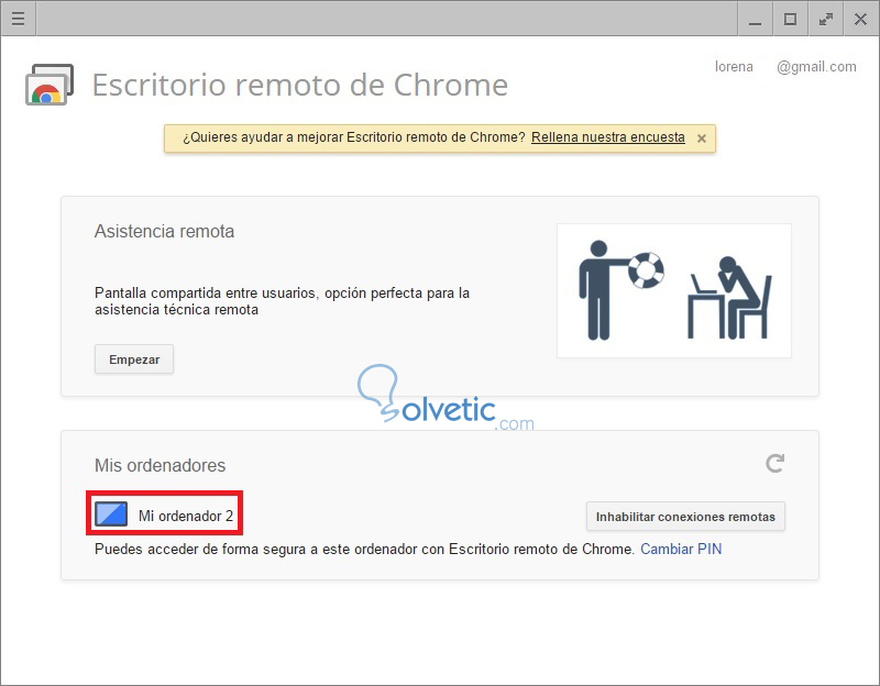 En la ventana que se mostrará se aprecian dos apartados: Asistencia Remota y Mis ordenadores.