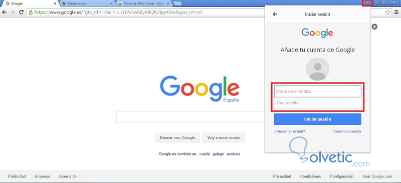 Desde el ordenador principal, el que se conectará remotamente a otro y que hemos llamado en este ejemplo “Mi ordenador 1”, inicia sesión en Chrome. Para ello, abre una ventana o pestaña del navegador y pulsa sobre el icono del “muñeco”. A continuación introduce la misma dirección de correo electrónico y contraseña de Gmail que usaste para instalar la aplicación en Chrome.