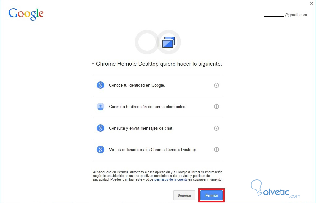 Acepta los permisos solicitados pulsando sobre el botón Permitir.
