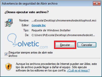 En la ventana que se abre, pulsa sobre Ejecutar y espera mientras se lleva a cabo la instalación del host.