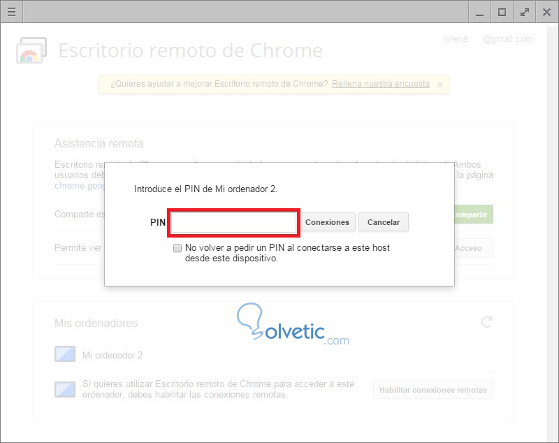 Ahora deberás introducir el PIN indicado en la configuración del equipo remoto (Paso 16).
