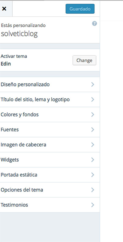 Como podemos observar, en esta sección tenemos gran variedad de opciones para personalizar nuestro blog, desde las fuentes, la imagen de cabecera, si queremos que la portada sea estática…