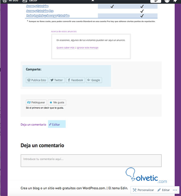 Si continuamos bajando podemos ver opciones como puede ser compartir nuestra entrada en Facebook, twitter o Google +. Además de la opción de que nos dejen comentarios.