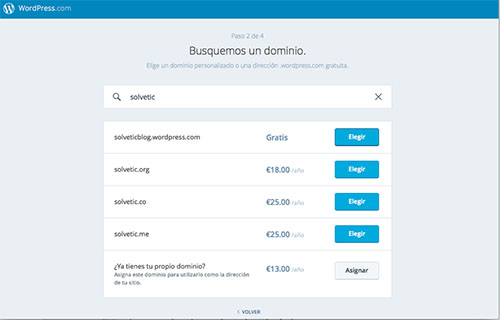 En este paso tenemos que seleccionar el domino que queremos utilizar para nuestro Blog. Podemos seleccionar uno gratuito o uno de pago.
