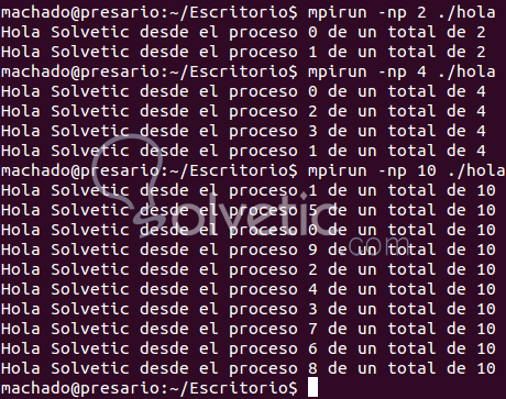 printf("Hola Solvetic desde el proceso %d de un total de %d \n", id, total_proc);