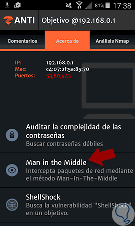 Otra utilidad es auditar la seguridad de un sitio web o un servidor, solo tenemos que ir a la pantalla principal de zAnti, acceder al icono + y añadir un dominio. Utilizando la opción ataque Man in the Middle podemos realizar diversas tareas y pruebas como :