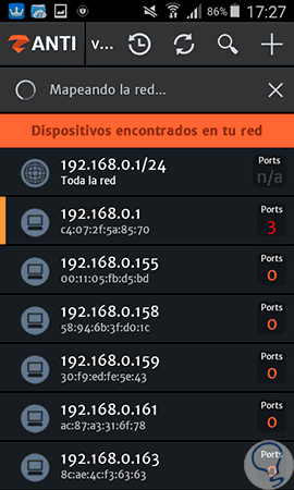 El escaneo es el resultado de algunas prueba realizadas con nmap desde zANTI en forma automática para mapear todas las ip en la red.