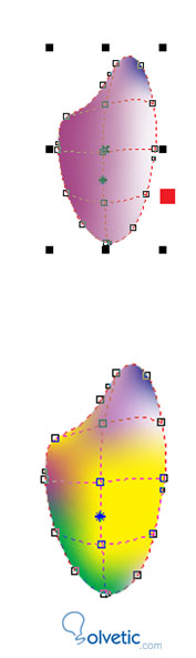 - Ahora llega el turno de colocarle colores a la malla. Se selecciona el objeto de relleno con malla y se comienza a arrastrar colores de la paleta de colores a cada zona de la figura: