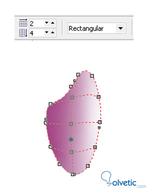 - A continuación se escribirán los valores que tendrá el relleno de malla (ver barra de propiedades en la parte superior); 2 horizontal y 4 vertical. Posteriormente presionar la tecla enter:
