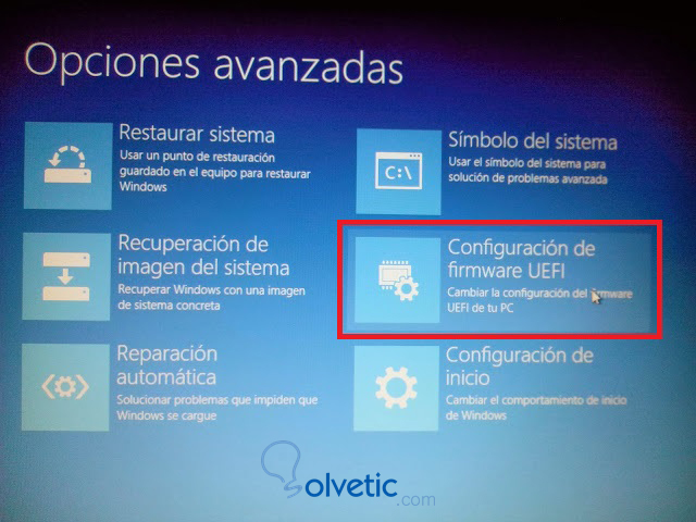 En estos casos es posible acceder a la configuración del firmware desde el propio Sistema Operativo, sin pulsar ninguna tecla durante el arranque.