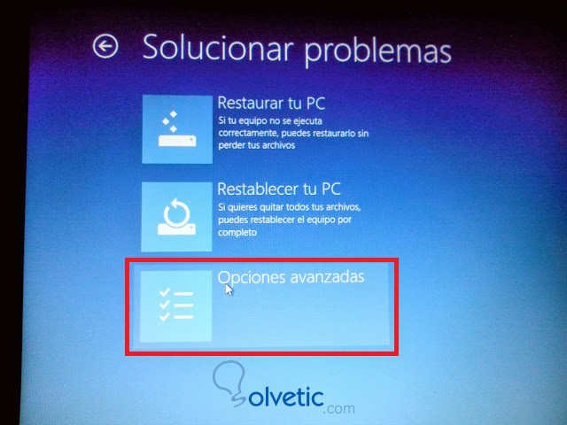 Se abrirá una nueva ventana en a que deberás seleccionar la opción Solucionar problemas.