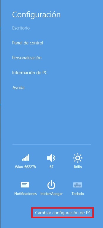 En la parte de abajo haz clic sobre Cambiar configuración de PC.