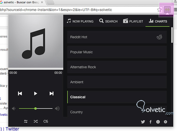 Escuchar música desde la barra de herramientas de Chrome