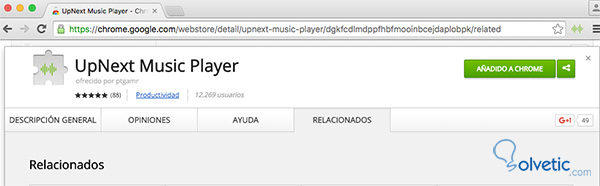 Lo primero que tenemos que hacer es añadir la extensión al navegador de Chrome desde UpNextMusic Player.