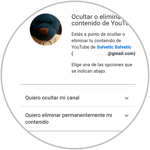 Ahora nos encontramos con la opción de “Eliminar mi canal” Si pulsamos esta opción, estaremos borrando nuestro canal pero no nuestra cuenta de Google.