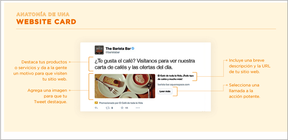 Seguidamente Twitter Ads muestra el formato del anuncio que será configurado ilustrando cómo y dónde lo verá la audiencia y las facilidades de optimización del anuncio en cuestión.
