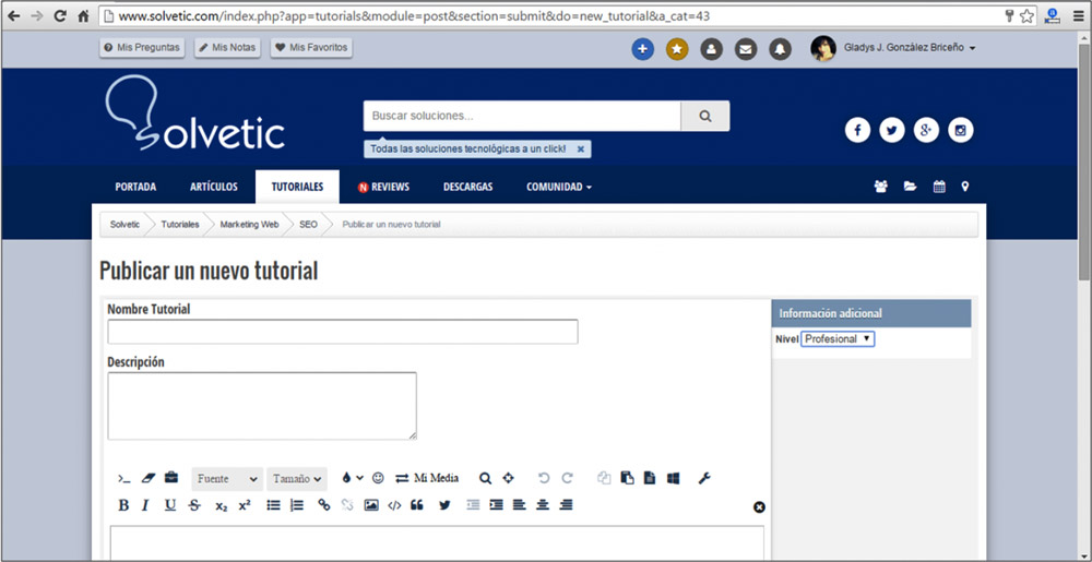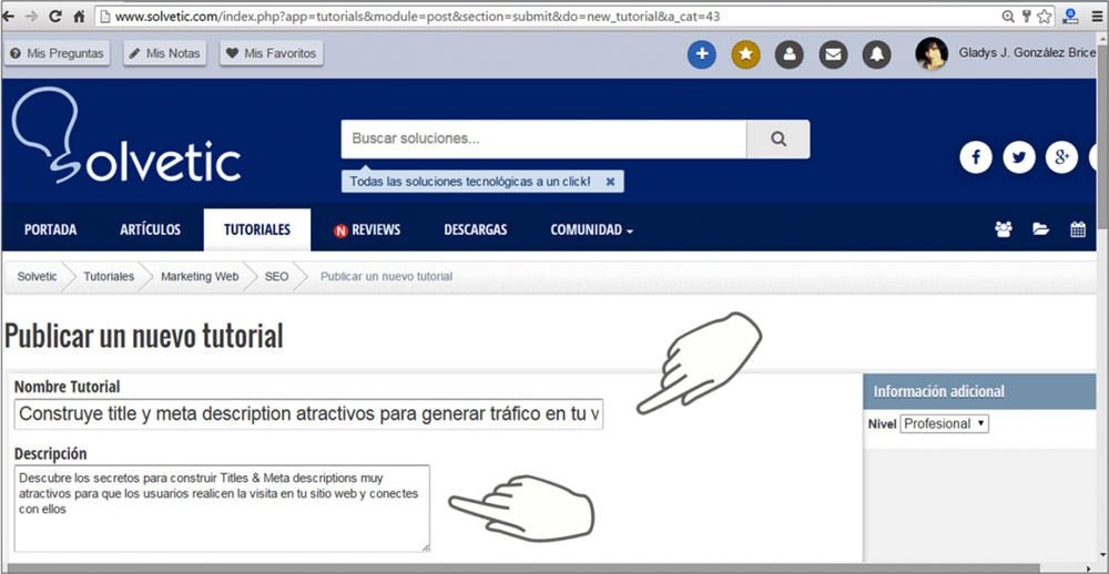 5.- Ingreso del título y meta description en el portal de Solvetic