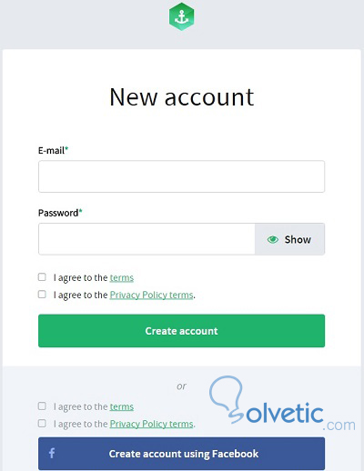 Puedes loguearte mediante tu cuenta de facebook o indicando un usuario y contraseña. En ambos casos deberás marcar las casillas en las que se indica que aceptas los términos del servicio y la política de privacidad.
