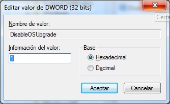 Si véis que no está creado en el registro la carpeta WindowsUpdate la creais poniendoos encima de la carpeta Windows pulsáis botón derecho del ratón y seleccionáis Nuevo > Clave y escribís de nombre WindowsUpdate, ahora dentro de ella creáis un nuevo Valor de DWORD (32 bits) y le ponéis valor 1