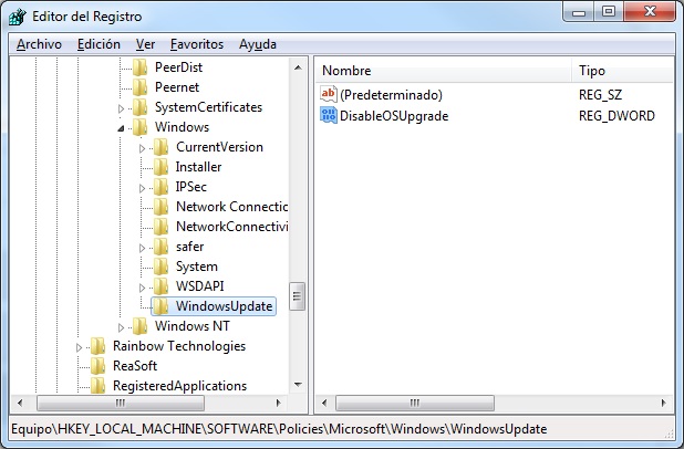 1. Descargas este parche de Windows Update en función del sistema que tengas:2. Nos vamos el Registro de Windows:
