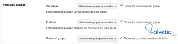 Los permisos básicos están para dar acceso solo a determinados miembros del grupo en caso de resultar necesario de realizar diferentes acciones.
