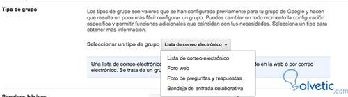 Ahora es el momento en que debemos diseñar nuestro grupo. Para ello debemos rellenar todos los campos que nos pide Google ( Nombre del grupo, dirección de correo electrónico del grupo, descripción del grupo, idioma, tipo de grupo y permisos básicos)
