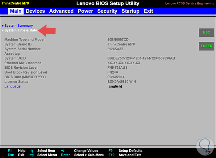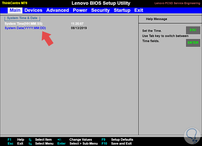 En caso de encontrar una diferencia en cuanto a fecha y hora en la línea “Alarm Date” podemos ir al menú Main y allí establecerlo en System Time & Date: