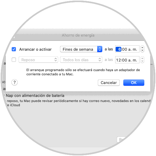 Allí damos clic en el botón “Programar” y en la próxima ventana activamos la casilla “Arrancar o activar” para encender el equipo en los días y hora deseados: