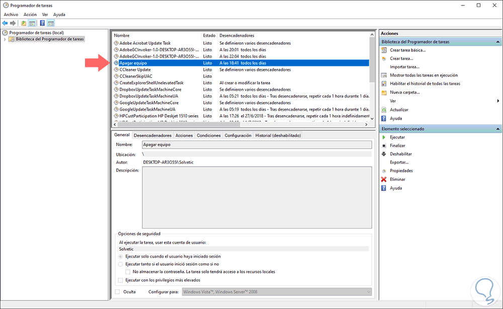 Pulsamos en Aceptar y veremos nuestra tarea creada: