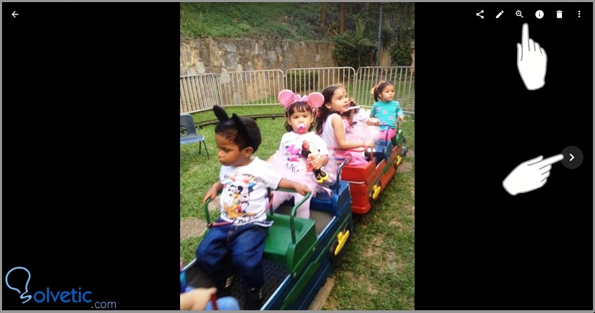 Para visualizar una imagen o video debe pulsar sobre la misma, al hacerlo verá que la interfaz cambia un poco y se despliegan en pantalla una serie de herramientas que a continuación se exponen.