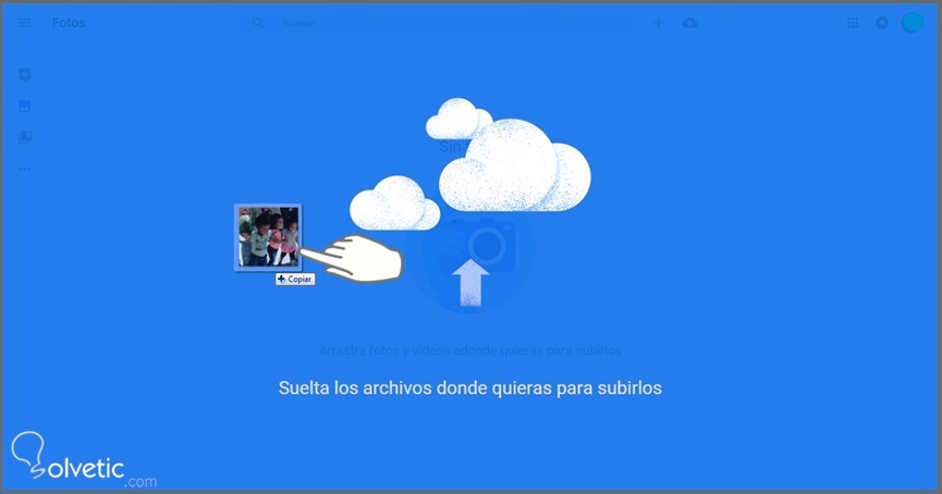 Si desea subir contenido de forma manual desde la galera de su ordenador o alguna carpeta o archivo debe pulsar el botón Subir Fotos representado con la forma de nube ubicado en la parte superior de la interfaz.