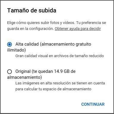 Google fotos realiza una conversión y compresión de tus imágenes con la finalidad de obtener capacidad ilimitada, esta configuración se puede modificar, por defecto las imágenes obtienen una calidad de 16 mega píxel, si deseas mantener la calidad original de la imagen solo tendrás una capacidad de 15 GB de memoria.
