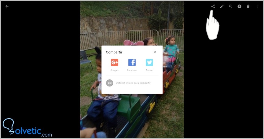 Representada esta función con el primer icono al pulsar sobre el podrá compartir todo ese contenido en redes sociales incluso puede obtener el enlace de la imagen.