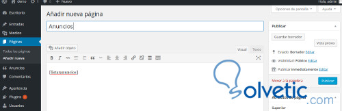 ?>Podemos separa el codigo css para ponerlo en un archivo aparte. Luego de grabar este shortcode podemos añadir algunos anuncios, en este tutorial pondremos anuncios inmobiliarios, pero podemos poner cualquier rubro.A continuación crearemos un pagina de Wordpress y le añadiremos el shortcode para mostrar el listado que es el siguiente [listaranuncios]