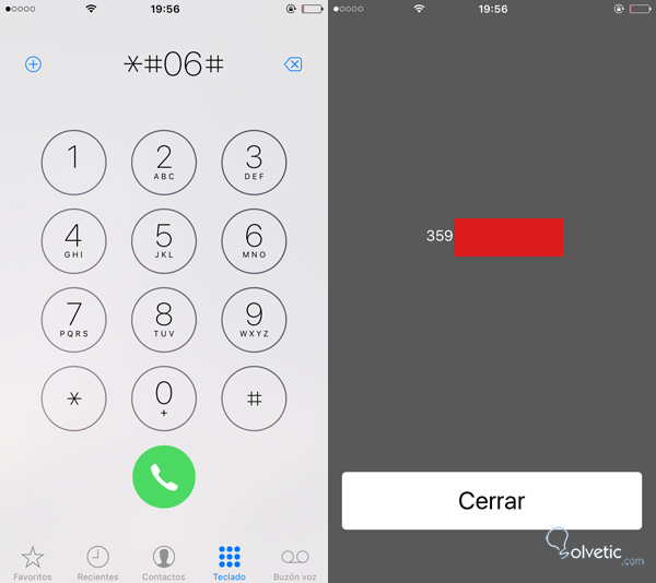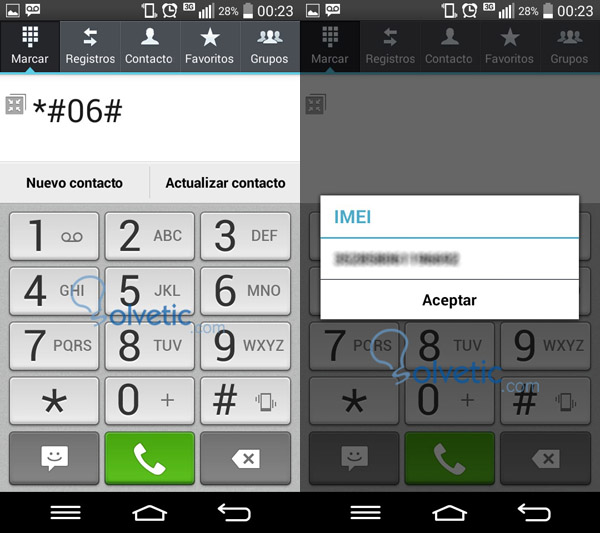 Es tan sencillo como realizar esta "llamada" en nuestro móvil: *#06# (asterisco, numeral, cero, seis, numeral) y automáticamente aparecerá en pantalla el código IMEI.
