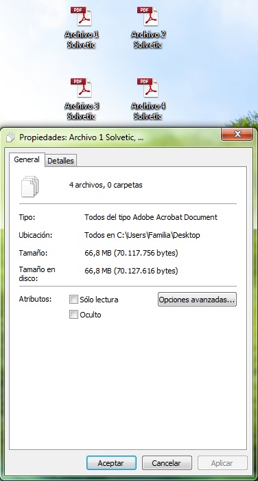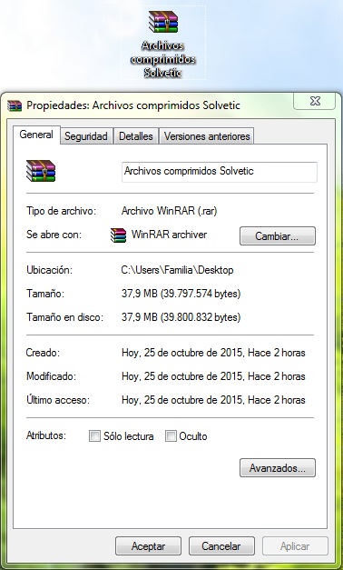 En nuestro caso habremos comprimido 4 archivos en formato PDF, con un tamaño total de 66,8 MB, y habríamos obtenido luego de la compresión con WinRAR un archivo único con un tamaño de 37,9 MB, es decir que habríamos realizado una compresión del 57% aproximadamente del archivo.