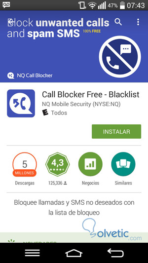 Para hacer esto posible necesitamos una aplicación que se llama ‘Call Blocker’, la encontraremos de forma gratuita en el ‘Play Store’. Si no la tenemos la podremos descargar e instalar: