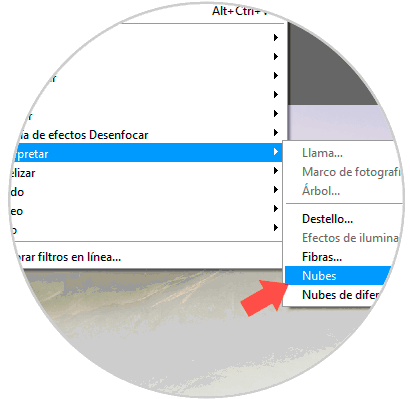 El siguiente paso es crear una nueva capa, y seleccionar en ella Filtro-interpretar-nubes.