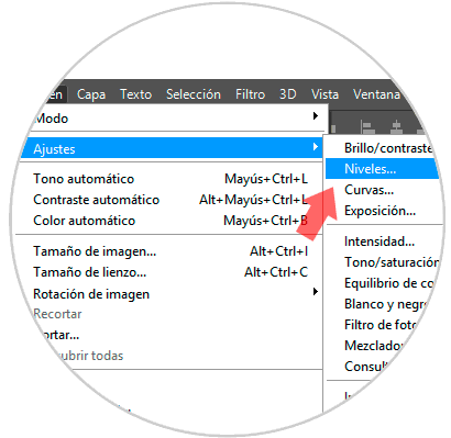 Una vez realizado esto, tenemos que irnos la pestaña de imagen-ajustes-niveles.