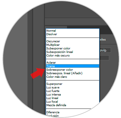 Tenemos que seleccionar en el modo situado en el lateral derecho del menú -trama.