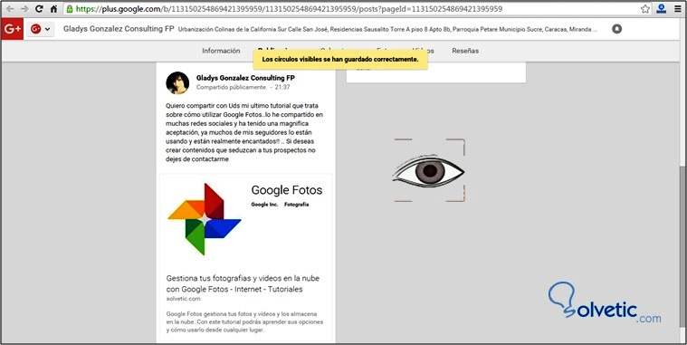 Al hacer clic el enlace direcciona hacia la página de tu negocio en Google (observa que la todos los seguidores y contacto de tu red social de Google+ ahora son parte de tu página empresarial).